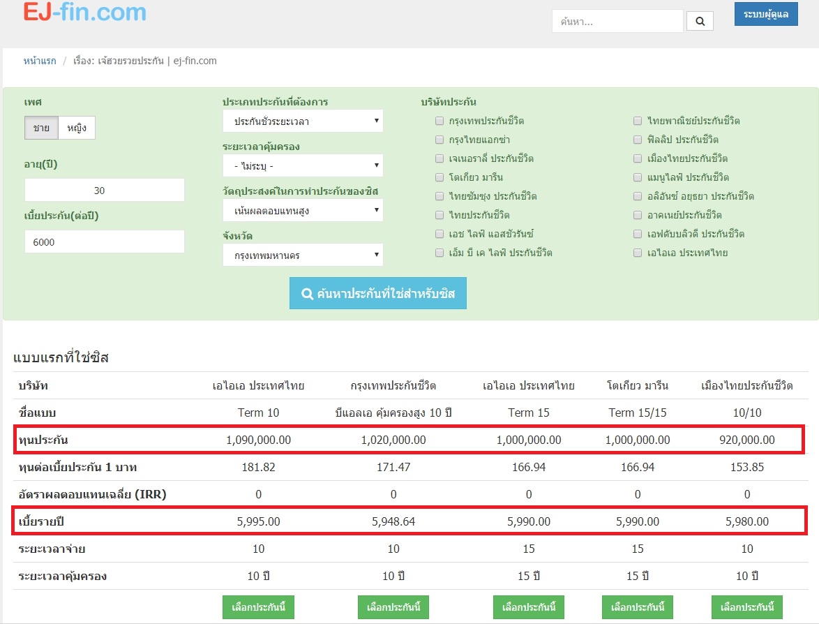 รำเสร็จก็ได้ประกันที่ออกมาจากระบบนาคีจากเว็บ ej-fin.com ของเจ้ โดยเจ้ใช้ตัวอย่างเป็นชายอายุ 30 ปีนะคร้า ซึ่งประกันส่วนใหญ่เท่าที่เจ้สังเกตุเป็นแบบจ่ายเบี้ยทุกปีจนครบสัญญาทั้งนั้นเลยคร่า (อันนี้ไม่แน่ใจนะคะต้องถามบริษัท) เห็นไหมคร้าทุนประกันประมาณ 1 ล้านเนี่ย จ่ายเบี้ยแค่ประมาณปีละ 6,000 บาทเองคร่า ทั้งเอไอเอ กรุงเทพประกันชีวิต โตเกียวมารีน และเมืองไทยประกันชีวิต อ้อ!!! ถ้าอยากทำประกันแล้ว ก็ลองกรอกข้อมูลแล้วถามรายละเอียดแบบประกันกับเจ้าหน้าที่ได้เลยคร่า เพราะขอย้ำอีกคร้้งว่าแต่ละบริษัทอาจมีเงื่อนไขไม่เหมือนกันนะคร้า ต้องให้ตัวแทนอธิบายคร่า