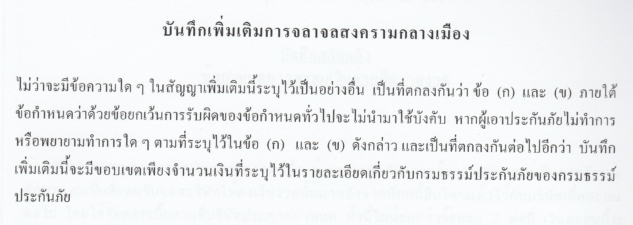ถ้าซิสอ่านดี ๆ บันทึกสลักหลังนี้จะเป็นการระบุไว้ค่ะว่า ถ้าซิสไม่ไปหาเรื่องใครจนโดนทุบกบาลแยก ประกันเขาก็จะจ่ายให้ค่า