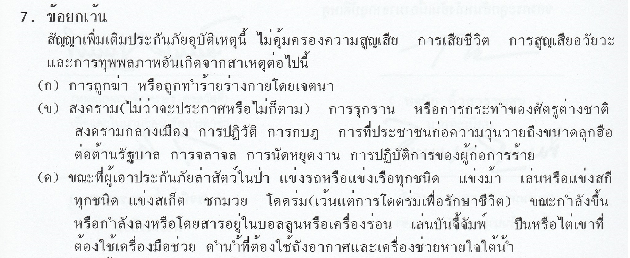 ถ้าซิสอ่านดี ๆ บันทึกสลักหลังนี้จะเป็นการระบุไว้ค่ะว่า ถ้าซิสไม่ไปหาเรื่องใครจนโดนทุบกบาลแยก ประกันเขาก็จะจ่ายให้ค่า